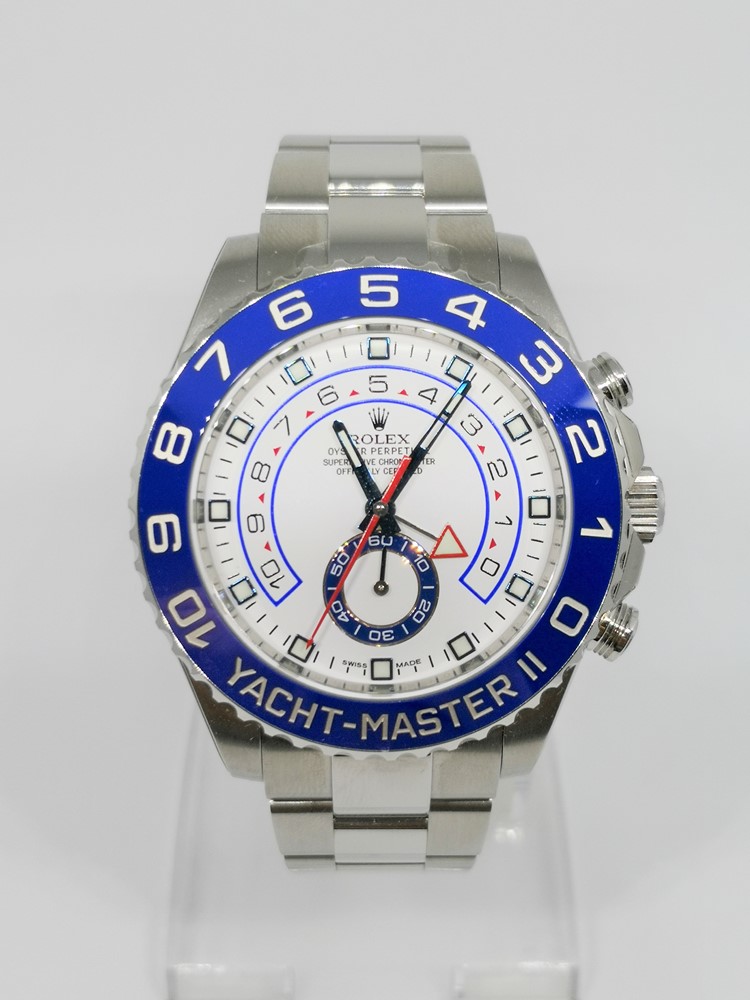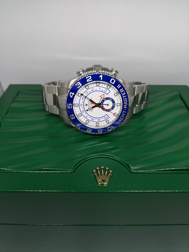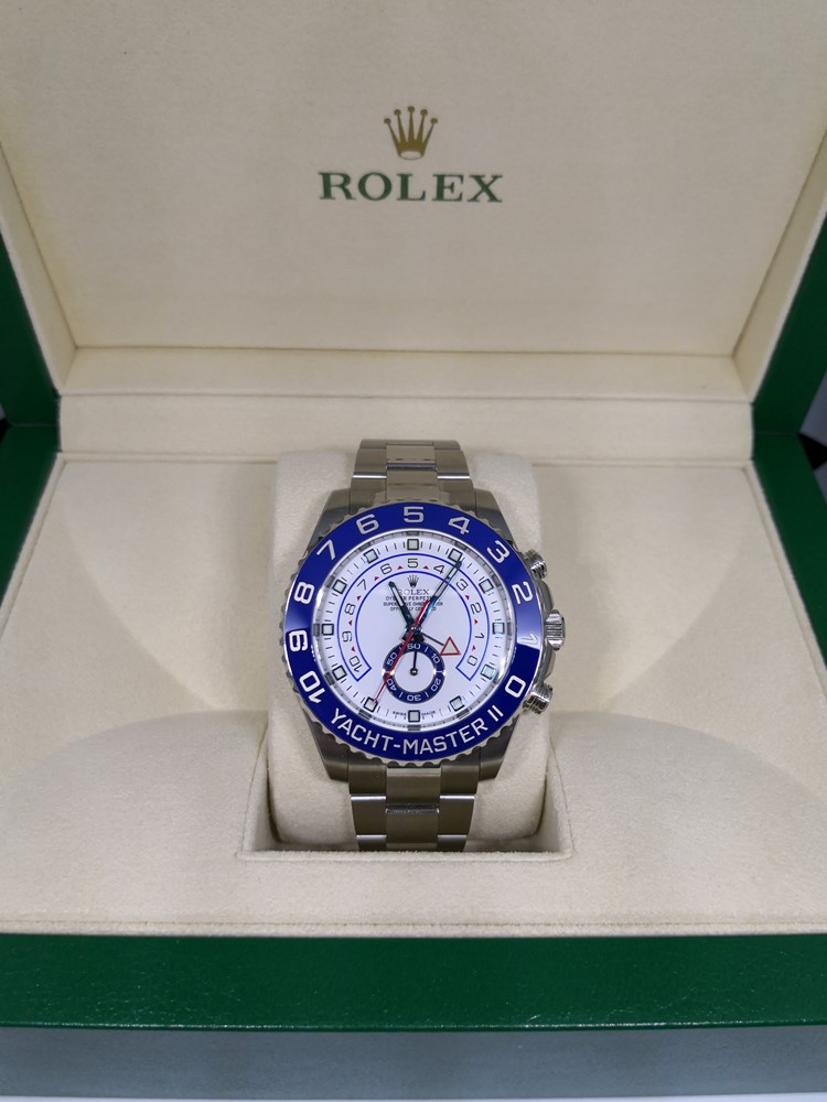 Yacht-Master II White Dial Oyster Bracelet 116680 with a steel case, steel strap, white dial with white gold hour markers and automatic movement. This watch comes with the Manufacturer's International Warranty until February 2023. * Condition: 10/10 * Paperwork: Rolex original papers dated Feb /2018 * Scratches: None * Box: Original inner and outer box